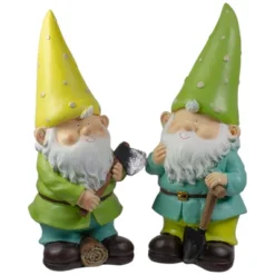 Northlight Set Of 2 Green And Yellow Gnome Outdoor Garden Statues 12.25″