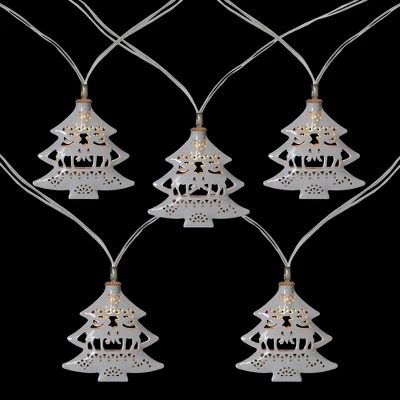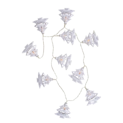 If you are looking for a unique battery-operated lighting accent, this holiday tree shaped light set in white will shine bright among your holiday decorations. Warm white lights shine through the intricate details, which includes two deer. A 3′ clear wire makes this light set a great choice for many spaces. Product Features:Color: white bulbs / clear wire Number of bulbs on string: 10Bulb size: mini bulbSpacing between each bulb: 4”Lighted string length: 3’Total string length: 3.75’9” clear lead cordholiday tree dimensions: 2.5″H x 2.75″W x .25″DAdditional Product Features:For indoor use onlyStraight line constructionRequires 2 “AA” size batteries (not included)Non-replaceable bulbsOn/off switch located on the back of battery packCannot connect multiple sets togetherNote: Set of 10 lights includes only 1 strand of lights