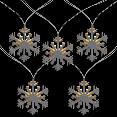Don’t limit your decorating to a space that requires an outlet. Use these battery operated lights to free yourself from the burden! These fun snowflake lights would be perfect for your holiday decor and can be displayed all winter long. Decorate a mantelpiece, centerpiece or doorway with these fun lights for a touch of warm light. Product Features:Color: candlelight clear bulbs / clear wire Candlelight lights are a mix of warm clear and pure white lightsNumber of bulbs on string: 10Bulb size: wide angleSpacing between each bulb: 4.25”Lighted string length: 3.25’Total string length: 4’11” clear lead cordSnowflake dimensions: 3″H x 2.5″W x .5″ deep Additional Product Features:For indoor use onlyStraight line constructionRequires 2 “AA” size batteries (not included)Non-replaceable bulbsOn/off switch located on the back of battery packCannot connect multiple sets togetherMaterial(s): metal/plastic/wireNote: Set of 10 lights includes only 1 strand of lights