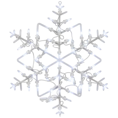 Illuminate your holiday season with the enchanting glow of this snowflake window silhouette. This one-sided design captures the timeless beauty of a delicate snowflake, creating a captivating display that will adorn your window with elegance and charm. Adorned with pure white LED bulbs, this luminous snowflake will cast a warm and inviting radiance that welcomes the festive spirit into your home. Product Features: Color: pure white bulbs / white wireNumber of bulbs: 50 Bulb size: mini concave wide angleFully assembled22″ white lead cord One-sided design Durable and re-usableWire gauge: 22 Additional Product Features: Super bright bulbsCool to the touch LED lights use 90% less energy Durable non-glass replaceable bulbsUL certified and approved for indoor or outdoor useIf one bulb burns out, the rest will stay litComes with replacement bulbs, spare fuses and a suction cup for mountingLights are equipped with Lamp Lock feature, which makes them replaceable, interchangeable and keeps them from falling outContains 1 plug with end connector which allows you to stack multiple lighted items together (not to exceed 210 watts) Dimensions: 18″H x 13.75″W x .50″D Material(s): plastic bulbs/wire/plastic frame