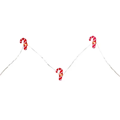 Add a dash of sweetness to your holiday decor with this holiday light set. These red and white candy cane lights are perfect for creating a cozy and festive atmosphere. Battery-operated for convenience, they emit a warm glow that will enchant your home this holiday season. Decorate your tree, wreaths, or any space with these cute candy canes to make your holiday truly magical.Product Features:Red and white striped candy-canesColor: warm white bulbs / silver wireNumber of bulbs on string: 20Bulb size: micro fairyBulb type: LEDSpacing between each bulb: 3.5″Lighted length: 6.5’Total length: 7.5’12” lead cordAdditional Product Features:LED lights have 90% less energyDurable non-glass replaceable bulbsBulb stays cool to the touchUL certified and approved for indoor use onlyIf one bulb burns out, the rest will stay litCannot connect multiple sets togetherRequires 2 “AA” batteries; not includedConvenient on/off switch on the battery packMaterial(s): plastic/wire