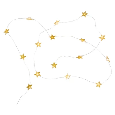 Add a touch of holiday magic to your holiday decor with these star lights. These mini-glittered gold stars are perfect for creating a cozy and festive atmosphere. Battery-operated for convenience, they emit a warm glow that will enchant your home this holiday season. Decorate your tree, wreaths, or any space with these glittery stars to make your holiday truly magical.Product Features:Glittery gold mini starsColor: warm white bulbs / copper wireNumber of bulbs on string: 20Bulb size: micro fairyBulb type: LEDSpacing between each bulb: 4″Lighted length: 5.25’Total length: 4.25’11.75″ lead cordAdditional Product Features:LED lights have 90% less energyDurable non-glass replaceable bulbsBulb stays cool to the touchIf one bulb burns out, the rest will stay litCannot connect multiple sets togetherRequires 2 “AA” batteries; not includedConvenient on/off switch on the battery packCovered outdoor area or indoor use recommendedNote: 20 count of lights includes only 1 strand of lights with 20 bulbs