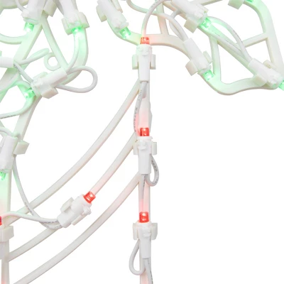Light up your home this holiday season with this candy cane window silhouette. The one-piece construction makes it an easy way to add a festive touch to your decor. Designed for windows, but also great for walls, doors, and mantles.Product Features:Color: red and green bulbs / white wireNumber of bulbs: 50Bulb size: mini24″ white lead cordOne-sided designAdditional Product Features:Super bright bulbsUL certified and approved for indoor or outdoor useIf one bulb burns out, the rest will stay litComes with replacement bulbs, spare fuses and a suction cup for mountingContains 1 plug with end connector which allows you to stack multiple lighted items together (not to exceed 210 watts)Dimensions: 18″H x 14″W x .25″DMaterial(s): plastic/wire/glass bulbs