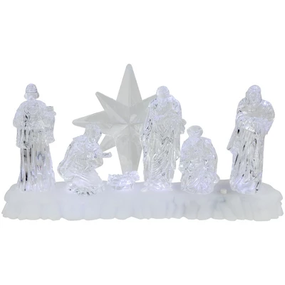 Enhance the magic of the holiday season with this pre-lit Nativity tabletop decoration. This enchanting centerpiece brings the story of the Holy Family and the Three Wise Men to life in a stunning display. It is pre-lit with white LED lights, creating a warm and inviting atmosphere. Designed to be battery operated, this decoration offers versatility in placement, allowing you to showcase its elegance anywhere in your home. Product Features:LED lighted nativity decorationPre-lit with pure white LED lightFeatures the Holy Family and the three WisemenRequires 3 AAA batteries – not includedOn/off switch located on top of baseFor indoor use onlyDimensions: 6.5″H x 12.25″W x 3.25″DMaterial(s): acrylic