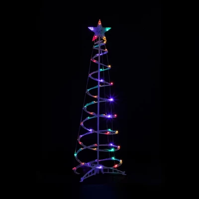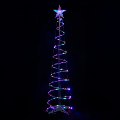 Create your own little holiday wonderland with our set of three multicolor spiral holiday trees. In graduated heights of 3’, 4’ and 6’, these cheerful lighted outdoor trees feature bright, energy-efficient and long-lasting LED bulbs in shades of red, blue, orange, yellow and green, topped by multicolor crystalline stars. Spiral trees assemble quickly and come with ground stakes for added stability outdoors. Bring joyful color to your holidays with a set of outdoor holiday trees that’s sure to charm!Product Features:Color: multi-color bulbs / white wire Multi-color consists of red, orange, amber, blue and green bulbsNumber of bulbs: 35, 50 and 80Bulb size: concave wide angle Bulb type: LED60″ white lead cord Quick and easy assembly Additional Product Features:Lighted crystalline star tree topper 8 and 10-piece easy assembly (including stands)Includes poles with stands and ground stakesContains 1 plug with end connector, which allows you to connect multiple items together (not to exceed 210 watts) Comes with replacement bulbs and spare fuseLights are replaceable and interchangeableWire gauge: 22 120 volts, 60 hertz, .17 amps, 20.4 watts120 volts, 60 hertz, .26 amps, 31.2 watts120 volts, 60 hertz, .51 amps, 61.2 watts Dimensions: 3′, 4’ and 6′ high (from the base of the stand to the top of the trees)3′ tree has a 13” base diameter (at the widest point)4′ tree has a 16” base diameter (at the widest point)6′ tree has a 19” base diameter (at the widest point)Star tree topper dimensions for the 3′ and 4′ tree: 7″ high x 7″ wideStar tree topper dimensions for the 6′ tree: 8.5″ high x 8.5″ wideMaterial(s): glass bulbs/wire/plastic