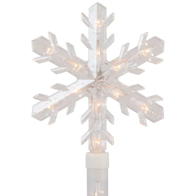 Illuminate your outdoor space this holiday season with our snowflakes holiday pathway markers. Each stunning snowflake-shaped lawn stake is adorned with 20 clear mini lights, creating a magical winter wonderland effect. With detachable ground stakes included, setting up is a breeze! UL-certified for outdoor use, these markers can withstand the elements, ensuring your pathway shines bright all season long. Plus, with end-to-end connectors, you can effortlessly connect up to 8 sets together for an even more dazzling effect. Make your home the highlight of the neighborhood this holiday!Product Features:4ct snowflake holiday pathway markersEach snowflake-shaped lawn stake is lighted with 20 clear mini-lights Ground stakes are connected with a white cord 29″ white lead cord 6″ white tail cordSpacing between each ground stake: 20 inches Lighted length: 5’Total length: 8’Additional Product Features:4 detachable black ground stakes included UL-certified and approved outdoor useComes with (4) spare replacement bulbs and (2) spare fusesEnd-to-end connectors allow you to connect multiple sets together (not to exceed 210 watts)120 volts, 60 Hz, 0.2 amps, 24 wattsDimensions of each snowflake: 21″H x 6″W x 1″DSnowflakes with stake: 27″H x 6″W x 1″DMaterial(s): plastic/wire/glass