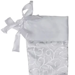Northlight 19” White And Silver Filigree Christmas Stocking With Bows